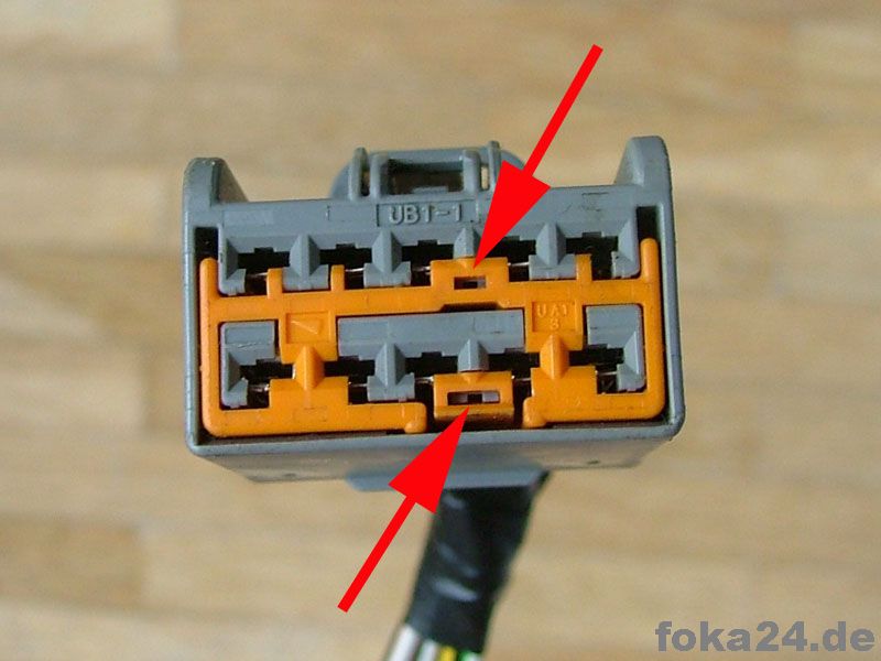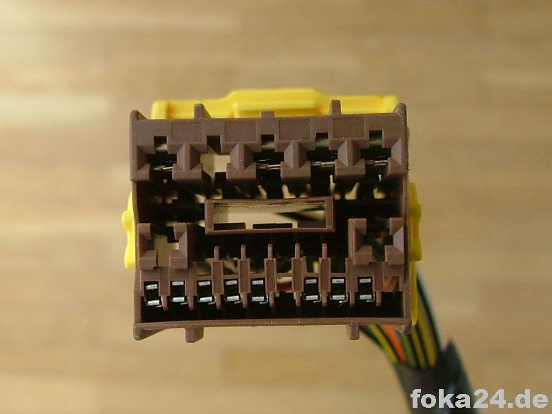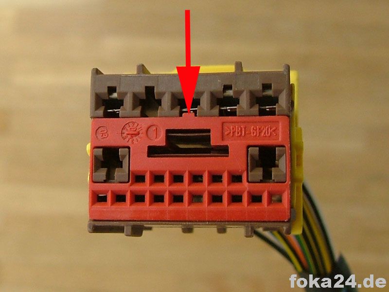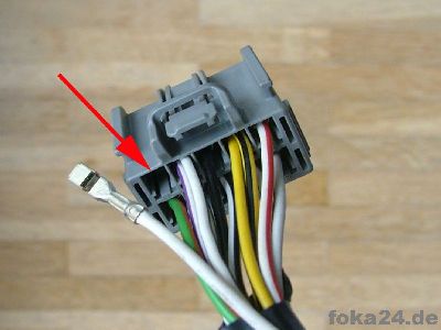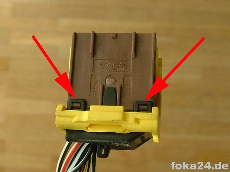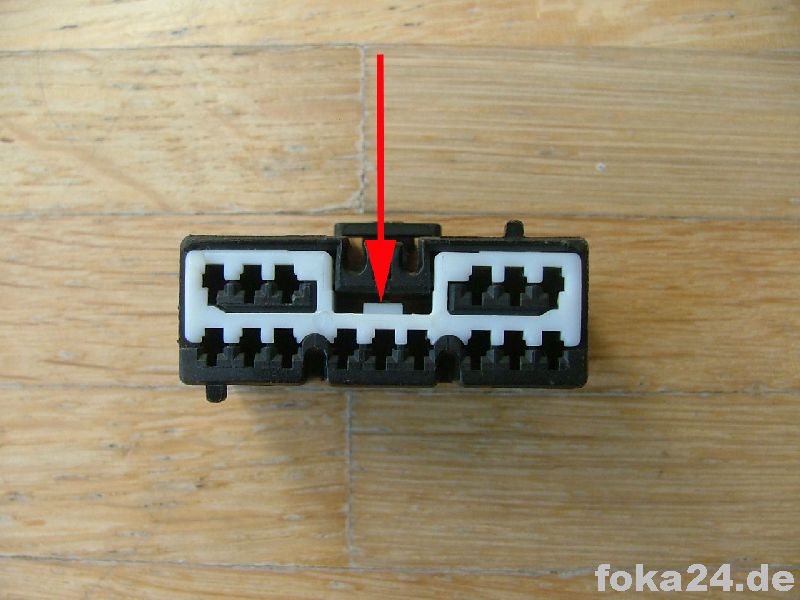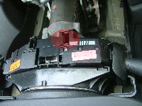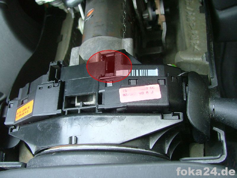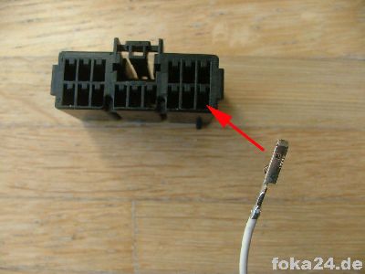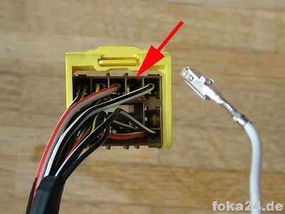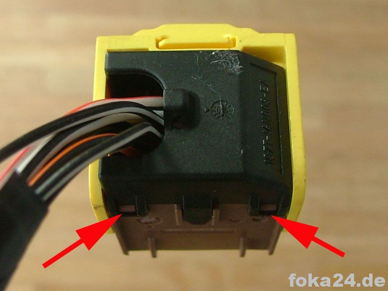Demontage der Lenksäulenverkleidung siehe oben unter "Kabelcheck". Den alten Wischerhebel vom Stecker lösen. Dann das Kabel in den Stecker stecken: