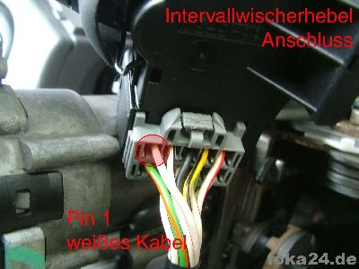 obere Lenksäulenverkleidung ausclipsen und abbauen. Wischerhebel ausrasten und in die Hand nehmen. Am Stecker schauen: es muss Pin 1 mit einem weißen Kabel bestückt sein.