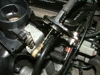 Hier geht es ganz einfach denn das sind die beiden Motoren bei denen es den Tempomat original ab Werk gab. Das andere Ende vom Bowdenzug kommt dorthin wo der Gaspedalbowdenzug auch hingeht - wenn man vorm Motor steht "hinten" an der der Spritzwand zugeneigten Motorseite. Dort die Hülle einfach einstecken in das Loch wo man sich schon immer gefragt hat wozu das eigentlich da ist ;-) Und das Bowdenzugende schließlich an die Mechanik dahinter.
