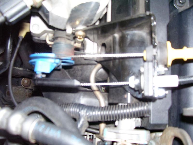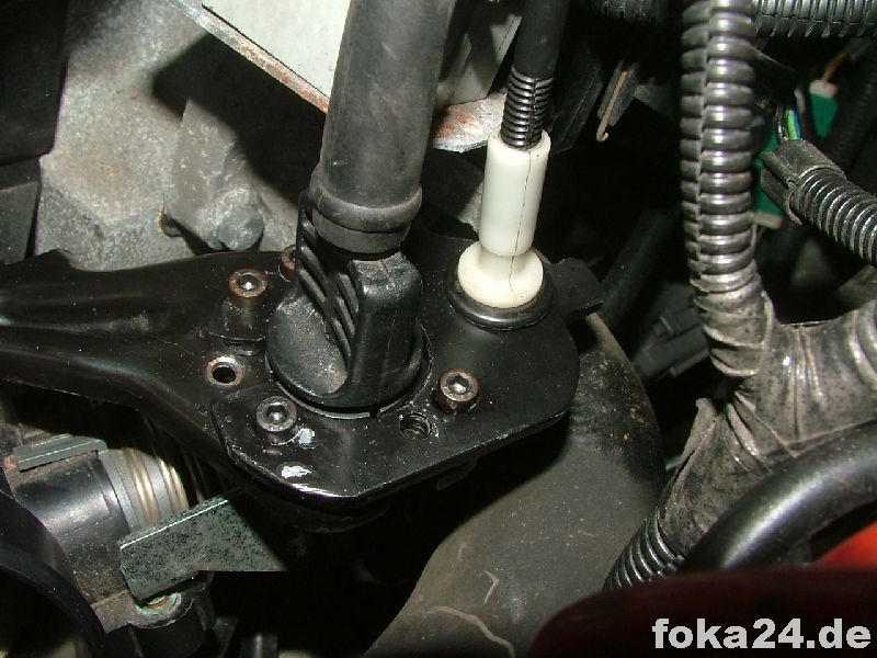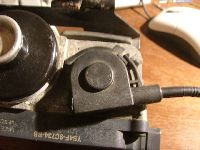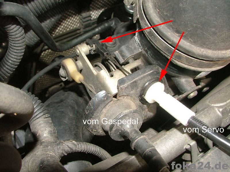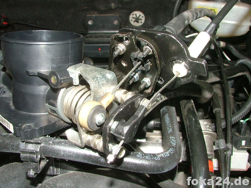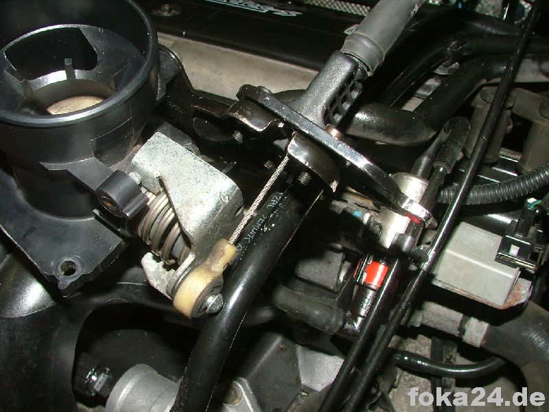Wie der Ausbau, nur umgekehrt. Nachdem der Gasbowdenzug eingehangen wurde kann die kleine Platte B an die Drosselklappe angeschraubt werden. An diese kommt dann der Tempomatbowdenzug. Bilder gibts bisher nur von dem Prototyp der Modifikation, welcher noch etwas "verbastelt" aussieht: