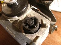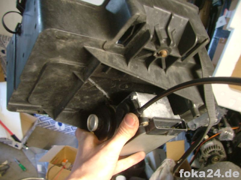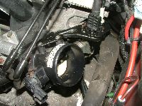 | Luftrohr demontieren und rüberdrehen (ist besser wenns über der Motoröffnung liegt wegen Verschmutzungsgefahr) | da soll das Servo hin (wo die Schraubbolzen zu sehen sind) |