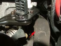 Wenn das erledigt ist kommt man gut an die Einbauposition des Servos an der Spritzwand ran. Dort erwarten einen schon drei vorbereitete Schraubbolzen, auf die das Servo draufkommt. Aber vorher noch den Bowdenzug am Servo montieren! Das geht eher ungünstig wenn das Servo bereits eingebaut ist.