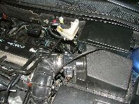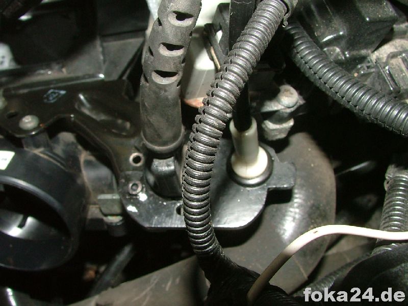 Eigentlich ist es sinnvoller, es vor dem Motorkabelsatz einzubauen (für die Kabelnachrüster - wer es bereits vorverkabelt hat nimmt einfach den Stecker und macht die Sicherungskappe ab) - es ist nur der Struktur dieser Anleitung geschuldet dass es hier erst danach steht. Der Einbau ist im Prinzip simpel, nur etwas fummelig. Das einzige was ausgebaut werden muss ist der Luftfilter und das Luftrohr zum Motor. Denn das stört.