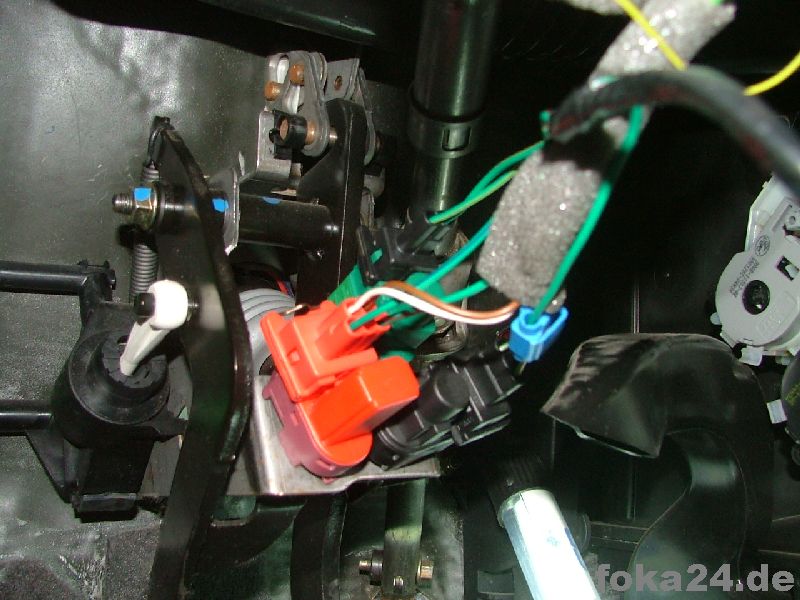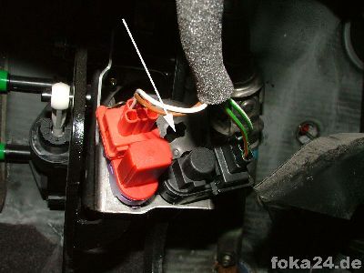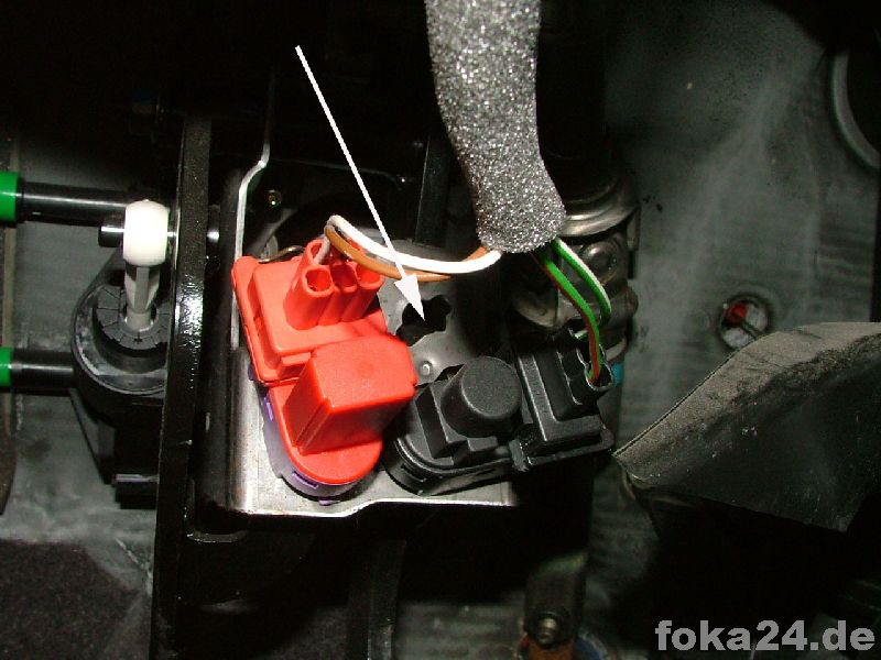 Der rote Kupplungspedalschalter wird gewechselt, der grüne Bremspedalstellungsschalter kommt neu hinzu. Alles ganz einfach.