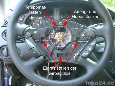 Technisch keine große Sache, aber Sicherheitsvorschriften sind zu beachten (siehe unten). Außerdem ist es meines Wissens nach selbst bei Beachtung aller Vorschriften verboten für Nicht-Fachleute Airbags auszubauen, dies dürfen wohl nur Sprengmeister. Also hier die offizielle Aufforderung, geht zum nächsten freundlichen Ford-Sprengmeister zum Lenkrad- (und Wickelfeder-)wechsel! Kostet nicht die Welt.