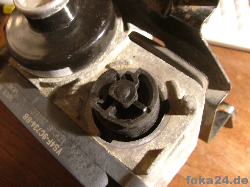 Hier wird die Werkstatt den Stecker auf der Rückseite lösen wenn das nicht schon passiert ist. Dann wird sie die Haltenasen links und rechts abhebeln und die Wickelfeder vorziehen.