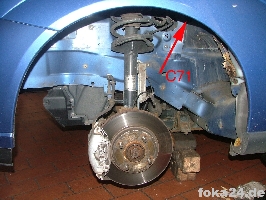 Um den Zugang zu C71 zum Innenraum zu schaffen muss die linke Radschale entfernt werden:
