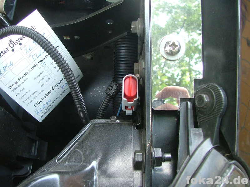 Hinter dem Scheinwerfer Fahrerseite befindet sich bei originaler ALWR Verkabelung zu dem noch ein 2poliger Diagnosestecker