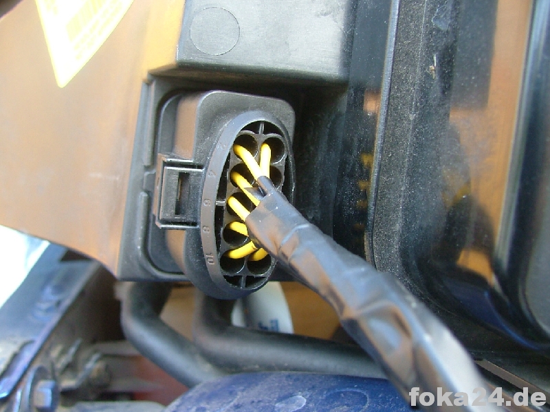 vor-Facelift: es sind die alten Scheinwerferstecker in die Adapter zu stecken. Wenn die Blinker in den Scheinwerfern genutzt werden sollen sind die Blinkerstecker in entsprechende Gegenstecker zu stecken die Teil des Adapters sind (siehe Vorarbeiten Adapterbau). Die Fl Scheinwerferstecker von VW sind außerdem möglichst mit Tape abzudichten.