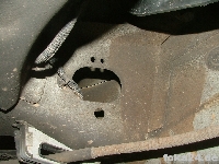 Der originale ALWR Hinterachssensor wird an der Hinterachse hinten rechts zwischen Querlenker und einer Verstrebung montiert. Bei Fl ab Bj. 10/01 sind die Löcher dafür komplett vorhanden (linkes Bild). Bei vFl Bj.98-10/01 müssen die an der Verstrebung noch gebohrt werden (rechtes Bild). VORSICHT mit der Benzinleitung dahinter! Nach dem bohren die Löcher mit Zink behandeln und entsprechend warten. Das Loch am Querlenker ist bereits vorhanden. Was außerdem fehlt sind die zahlreichen Löcher zum befestigen des Kabelbaums. Ich habe hier aber auf ein weiteres bohren verzichtet.