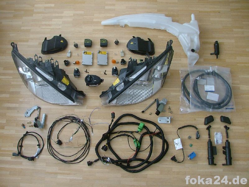 Pfingsten war es so weit und der Xenon Einbau kam dran. Verbaut wurde das komplette originale Xenon System mit automatischer Leuchtweitenregulierung (ALWR) und Scheinwerferreinigungsanlage (SRA). Zeitaufwand etwa 10h incl. ALWR Kalibrierung bei Ford. Dazu kamen noch einige Nacharbeiten da die SRA zunächst nicht ganz funktionierte.